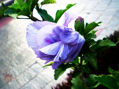 第一次看见紫色的大红花,不太娇艳,有点憔悴了,是累了吗?